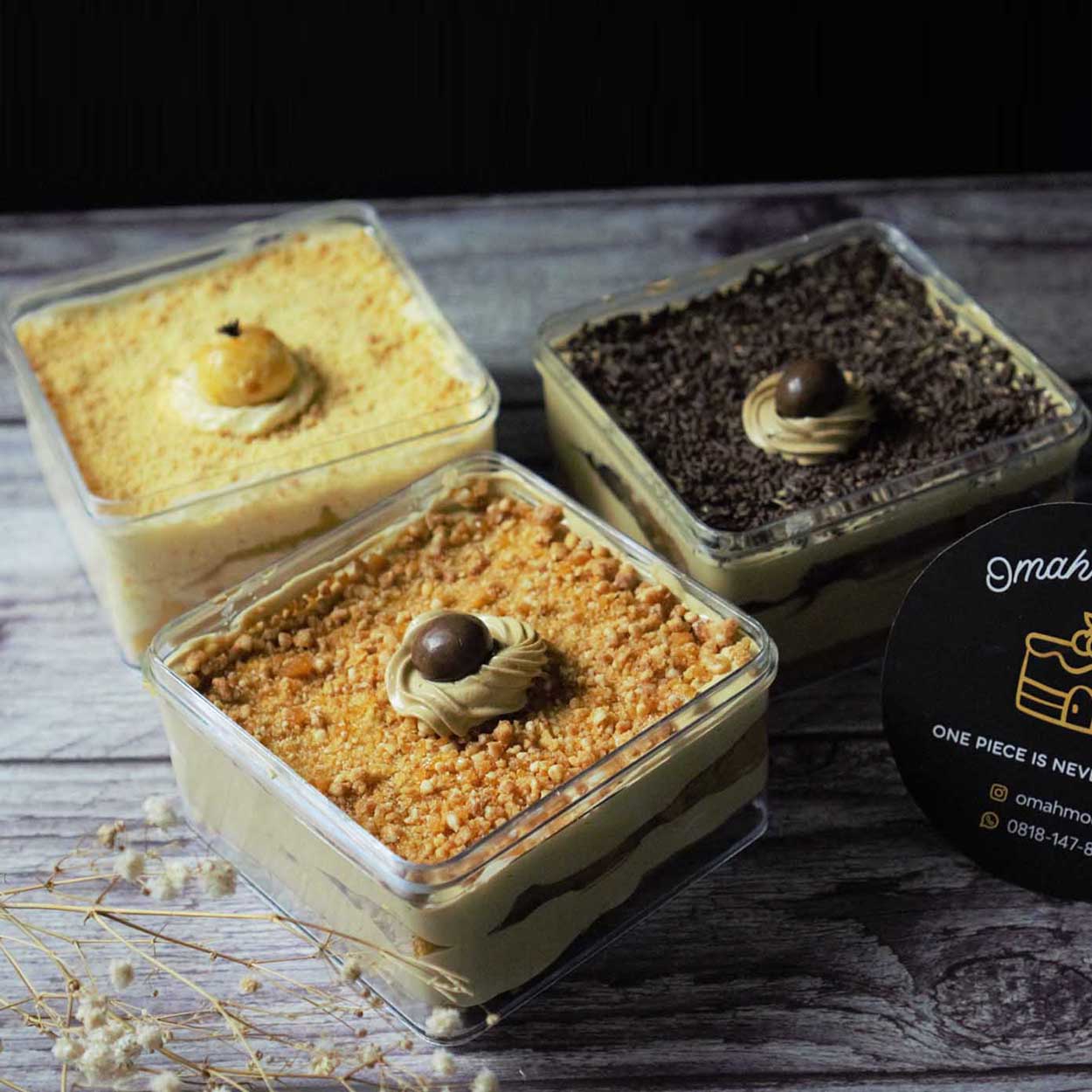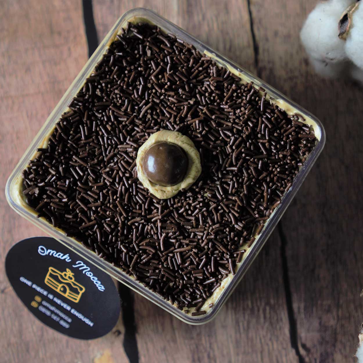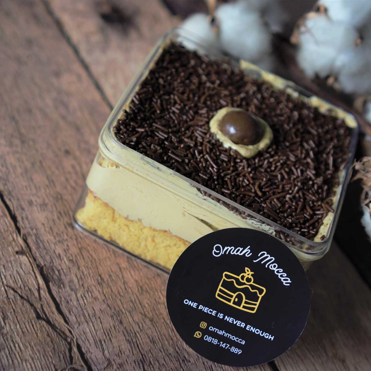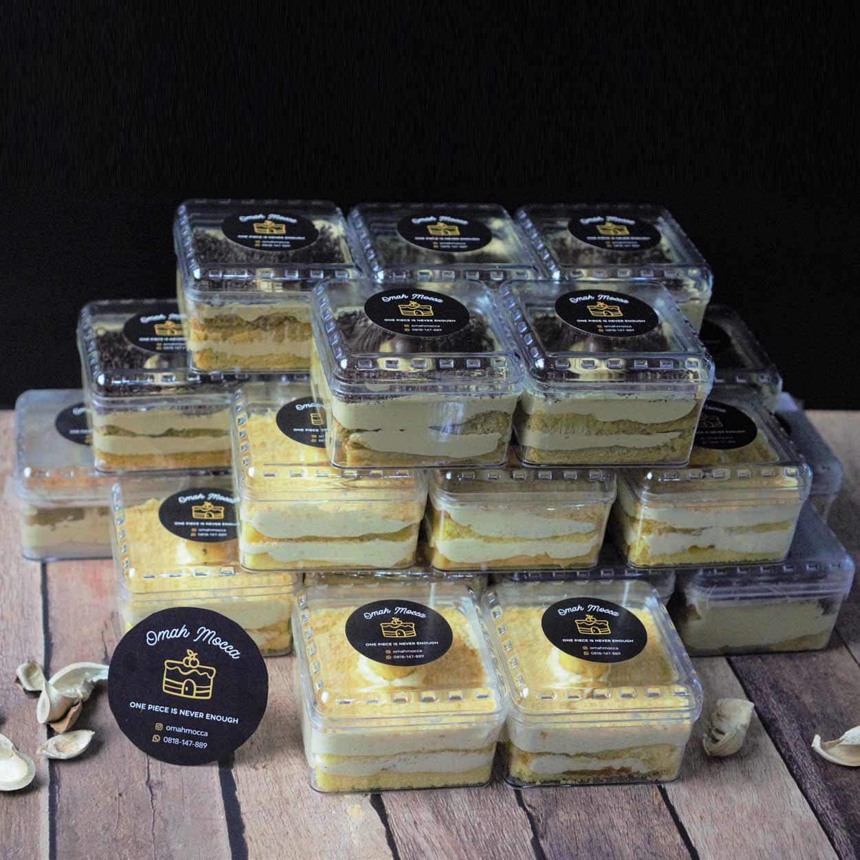 Delicious homemade mocca cake or vanilla cake served in a square box for your dessert