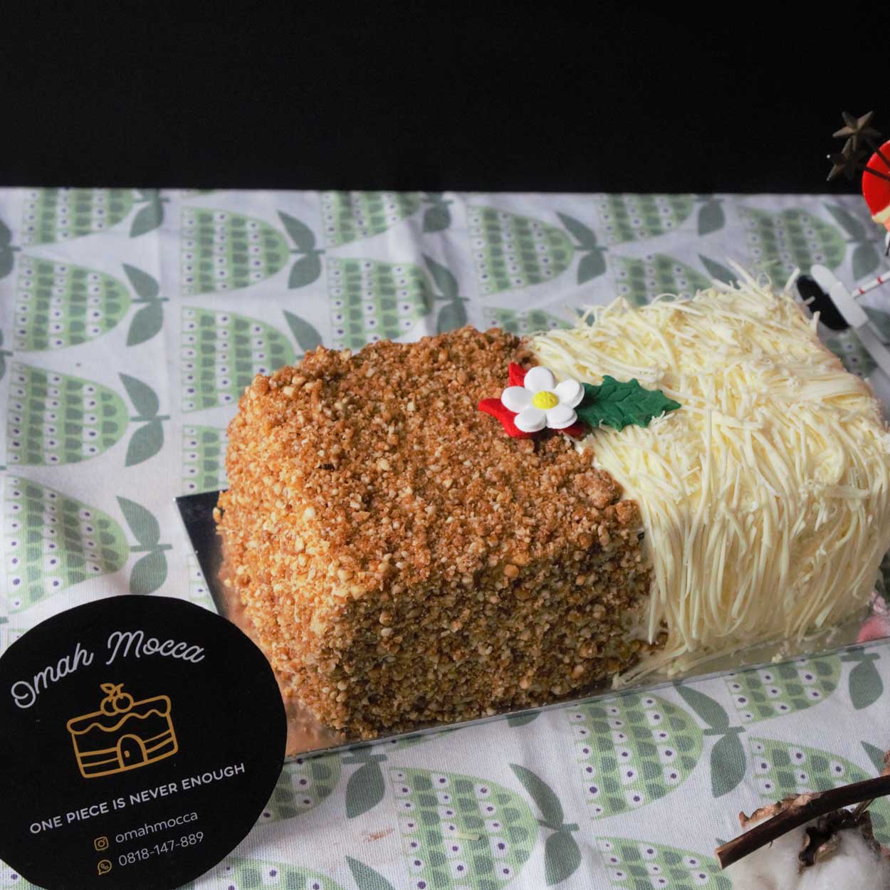 Delicious homemade mocca cake or vanilla cake in easy-to-carry packages